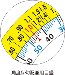 ・角度目盛、勾配目盛付で各種工事の傾斜角や水平出しに
