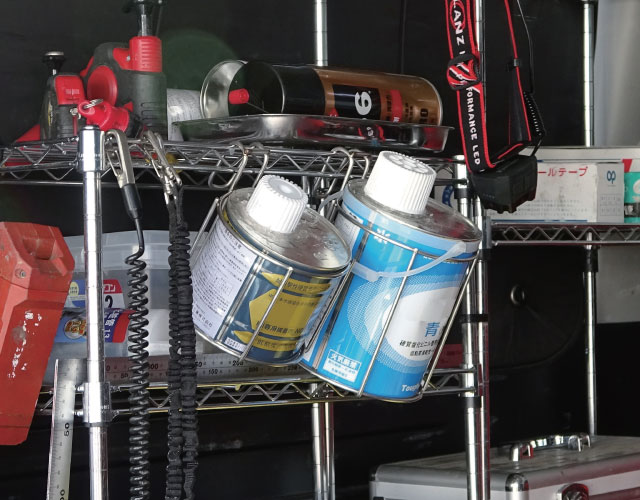 鋼管接着剤(一般配管用)や塗料缶などの保持に
