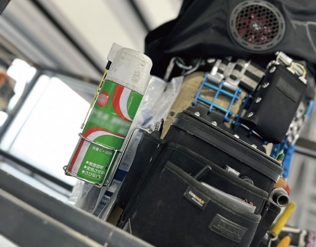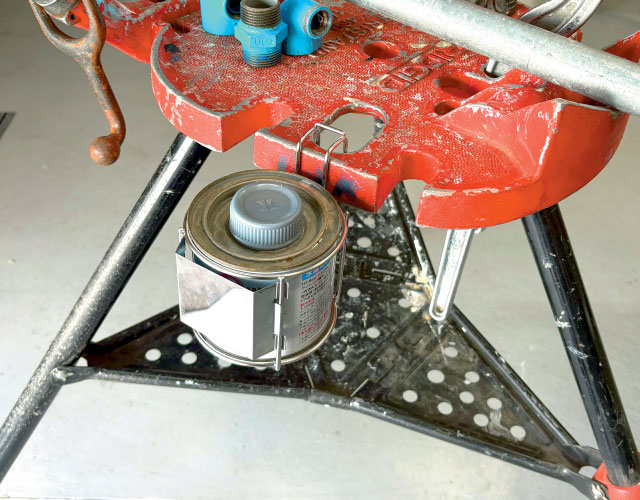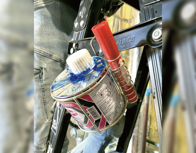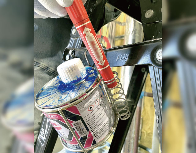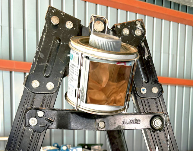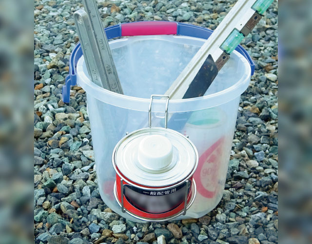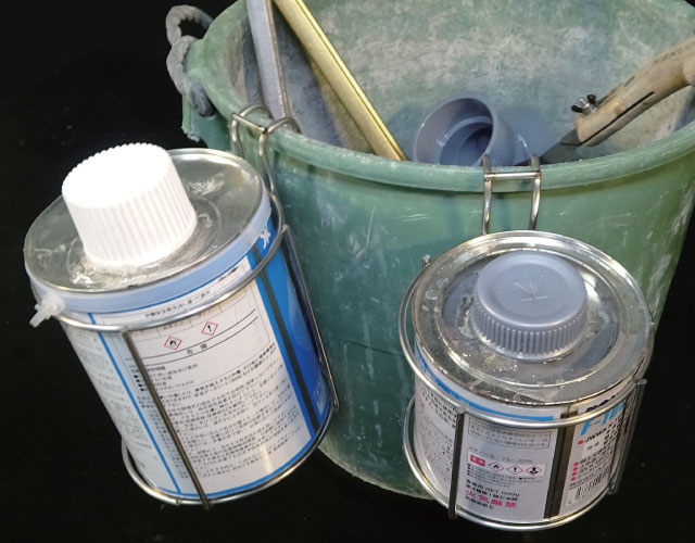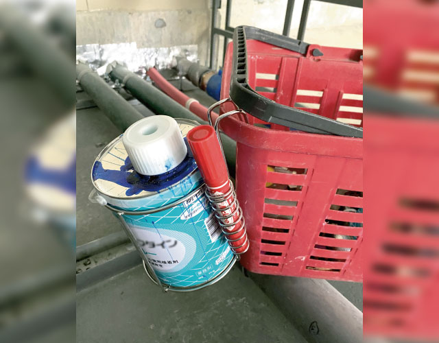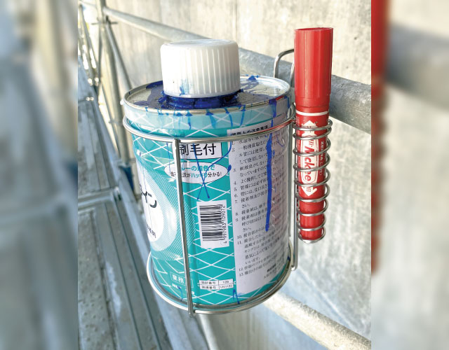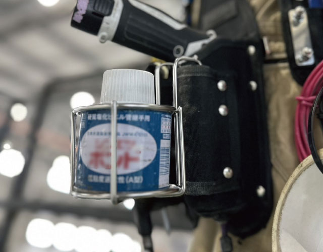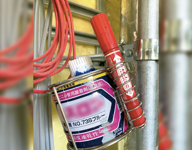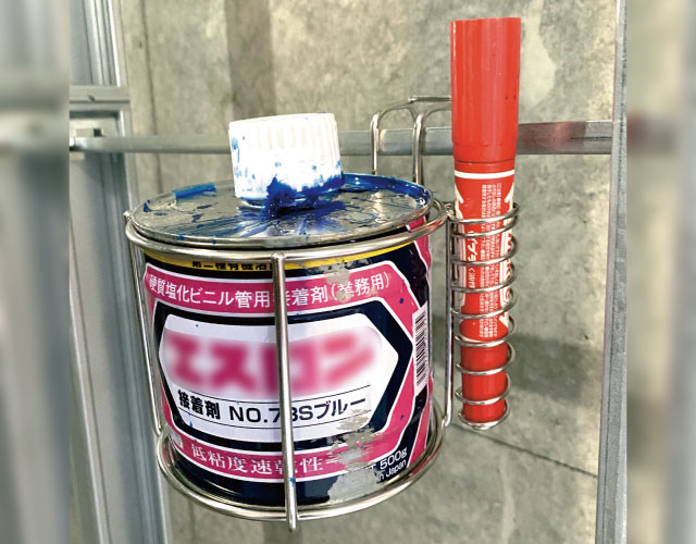 糊とペンの二刀流、塩ビ管接着剤や塗料缶などの保持に