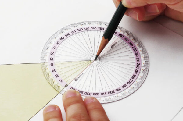 中心に穴が開いているから、えんぴつの先端を挿して0°を合わせられる!