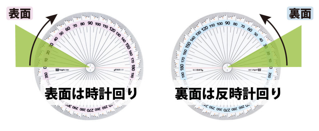 ●基線(0°)が赤線だから基線(0°)と角の辺が合わせやすいです。