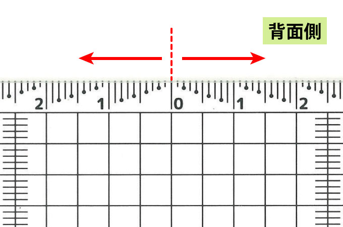 背面側は左右振り分けに便利な中央基点目盛です。