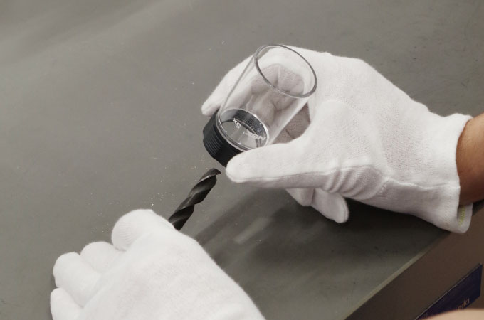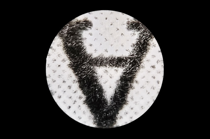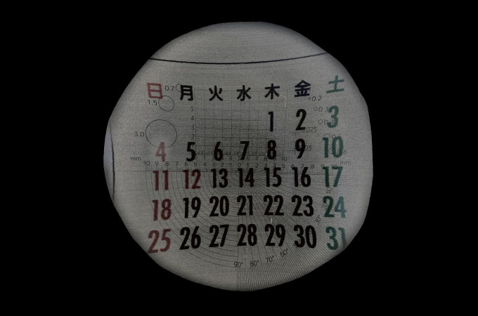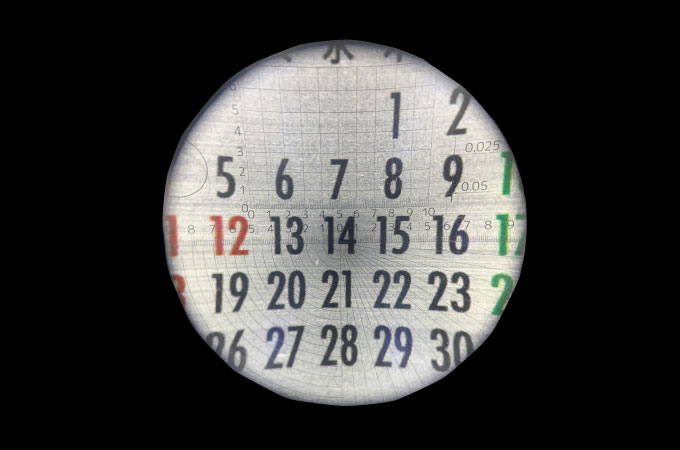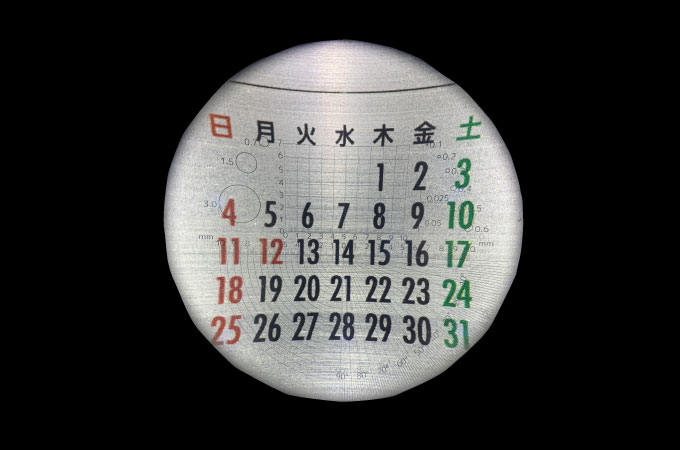 長さ目盛は0.1mm単位の目盛が見やすい階段状目盛です。幅、直径などの寸法や角度が読み取れます。