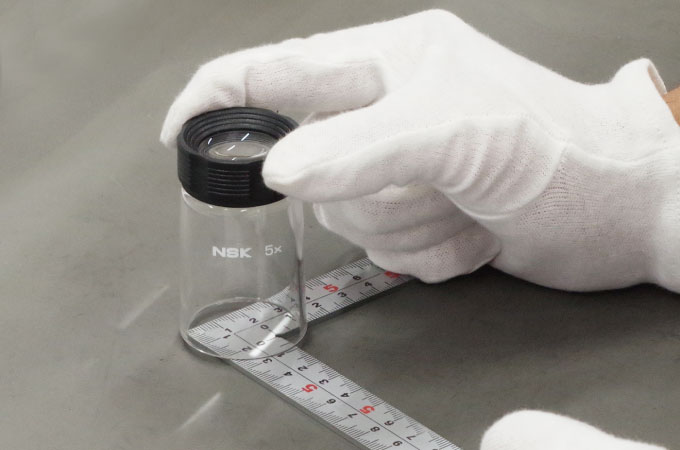 LEDライト、スケール板付のルーペです。当社従来品(LSL-35)の約4倍の明るさ、約1.4倍の有効径が特徴です。