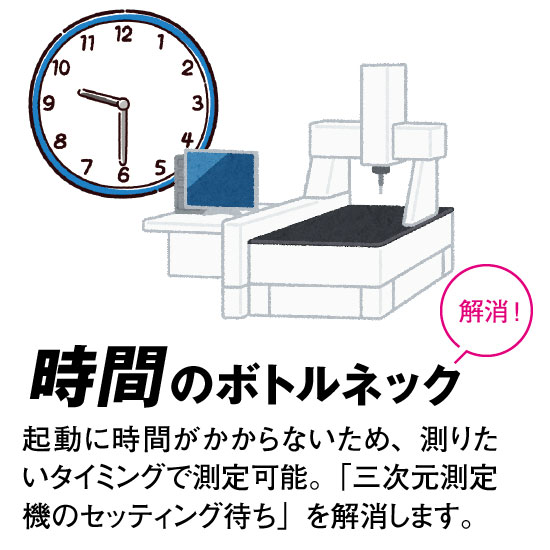 簡単に扱えて、三次元測定機に劣らない精度を実現しています。