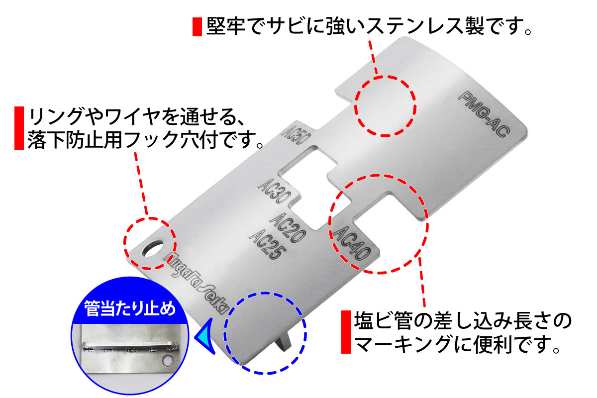 塩ビ管の接合や継手の差し込み長さをマーキングするゲージです。