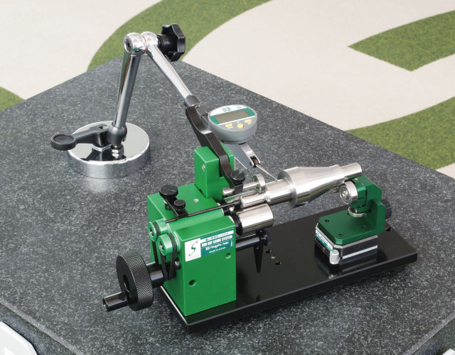 軸方向の円周振れ(直角度)を測定するための精密測定治具です。