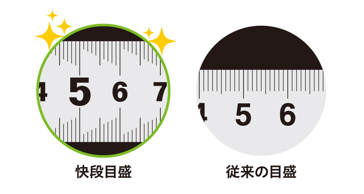 その想いを込めて「快段目盛」は次世代のスタンダードへと進化を続け、「見やすさ」や「使いやすさ」をこれからもお客様へお届けしていきます。