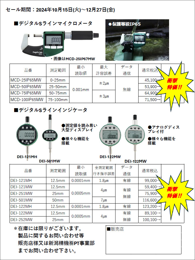IPノギス・マイクロが大特価! ~新潟精機 年末大放出セール開催~