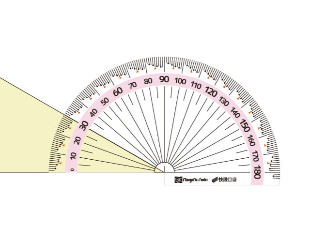分度器の表と裏で目盛を使い分けることで、数字の向きが一方向になり、読み間違いを防ぎます。