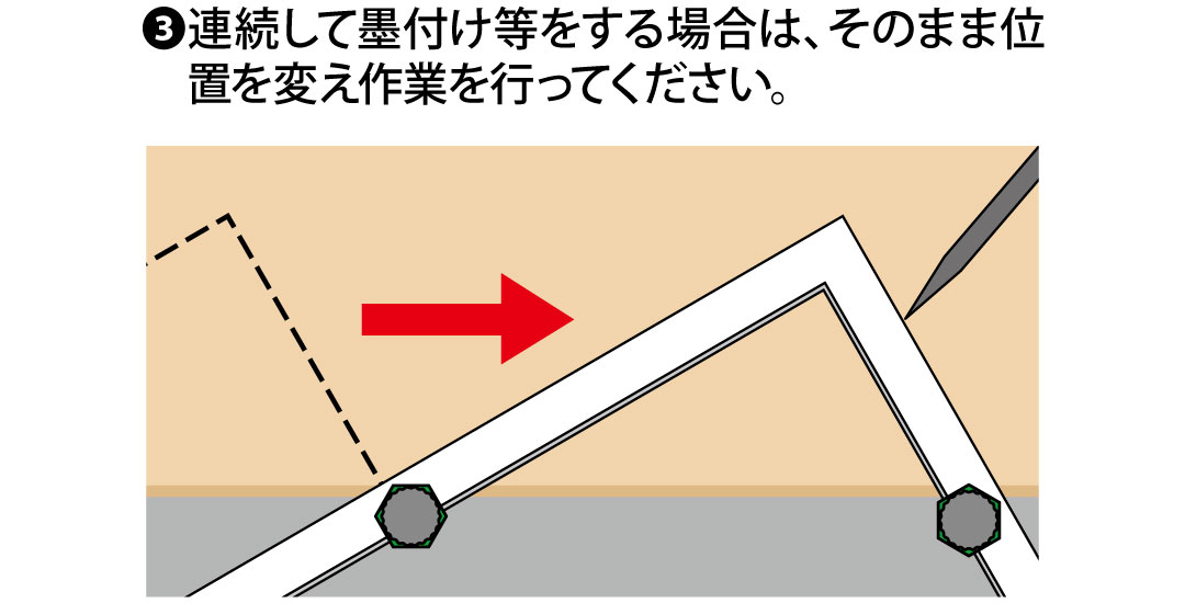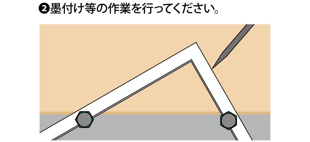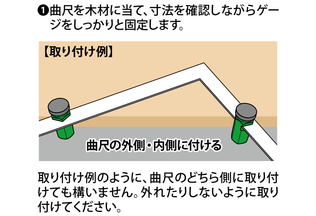 ・曲尺に取り付け、階段寸法などの墨付け用ガイドに