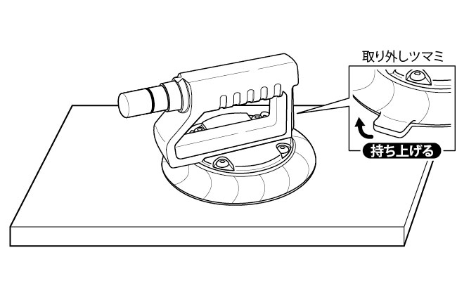 2.吸着ラバーの取り外しツマミを持ち上げ、対象物から本品を取り外します。