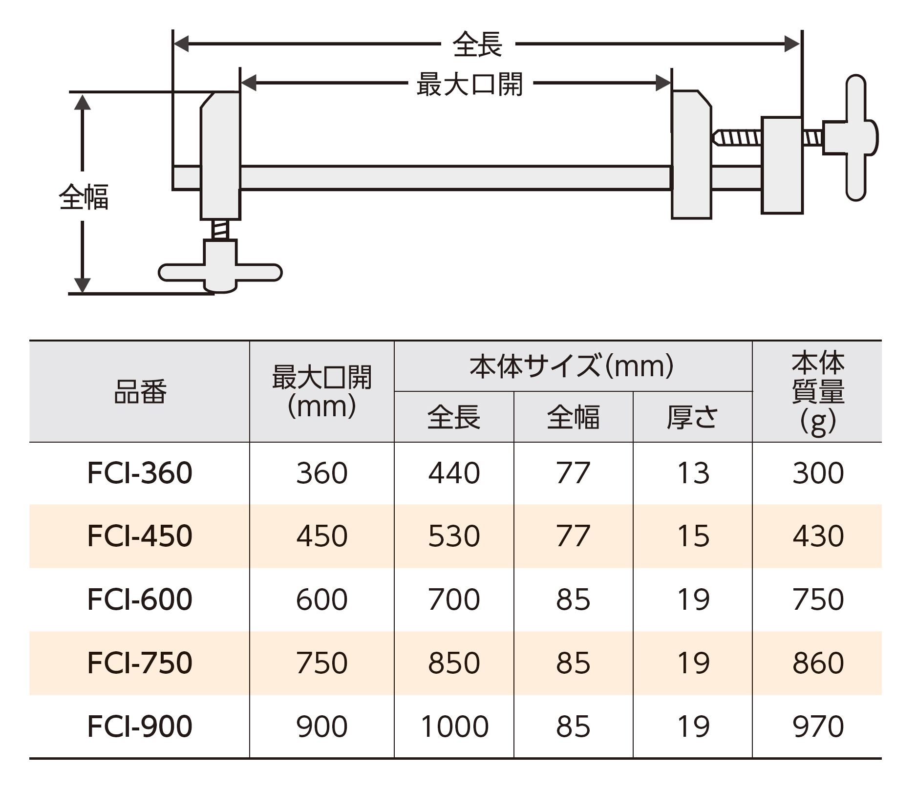 | 00508102 | FCI-450 | 430g | 77mm | 530mm | 15mm | 4,500 円 | 4975846533103 |
