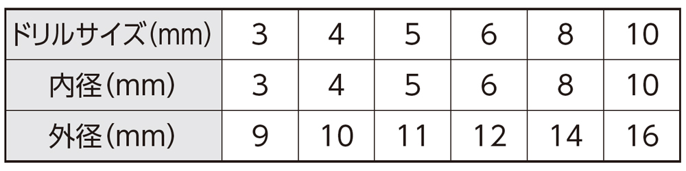 • ●適用ドリルサイズ(mm):3、4、5、6、8、10