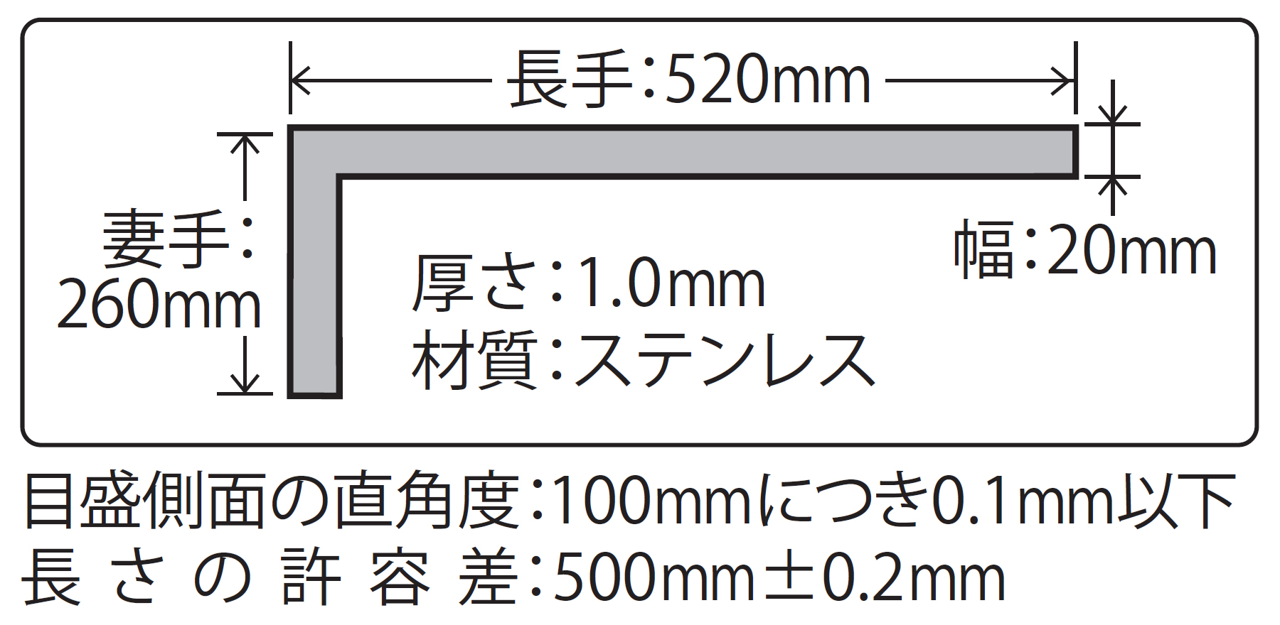 - ●裏目盛(cm):長手・外50内45(内基準)、妻手・外25内20(内基準)