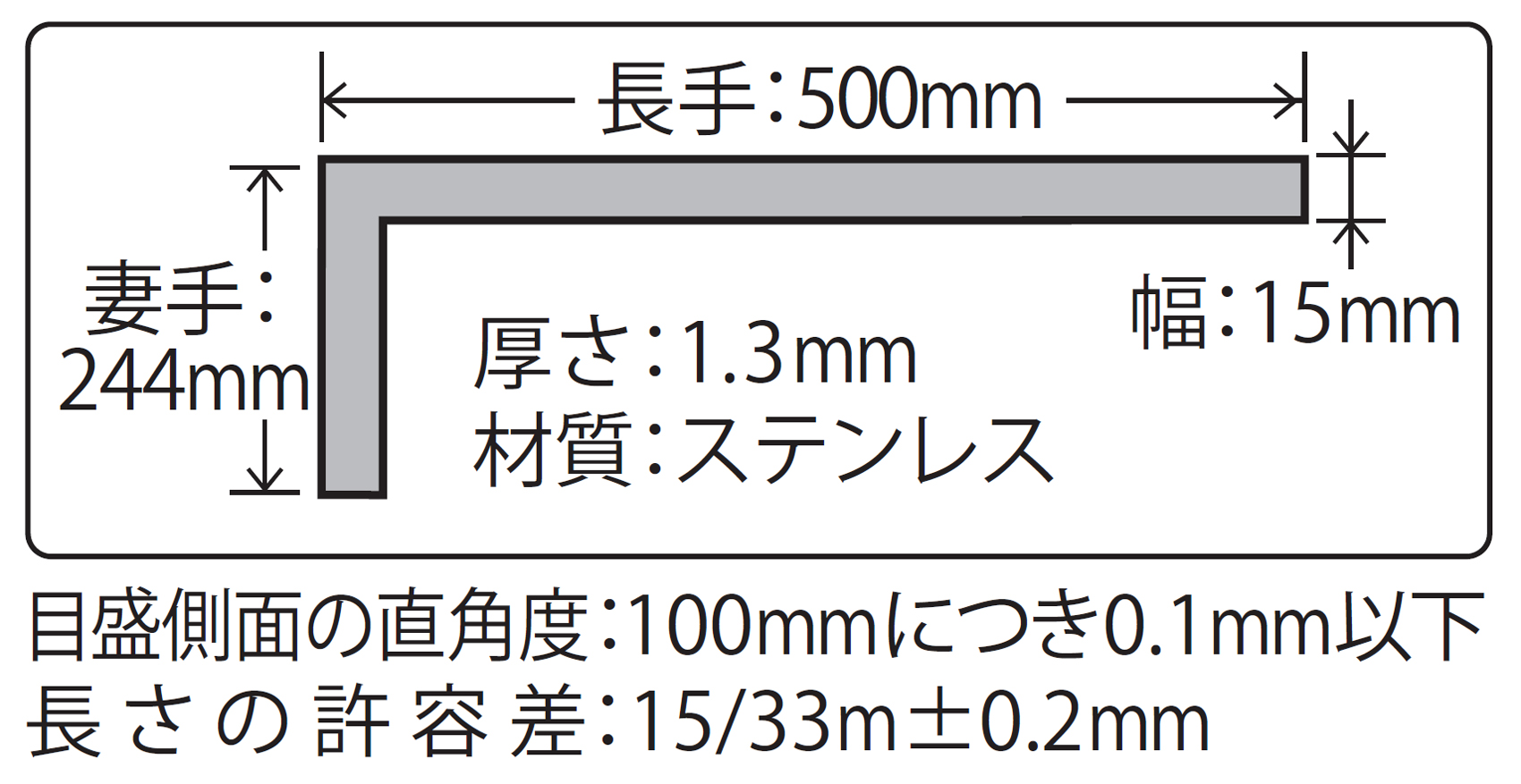 - ●長手(妻手)x巾x厚さ(mm):500(244)x15x1.3