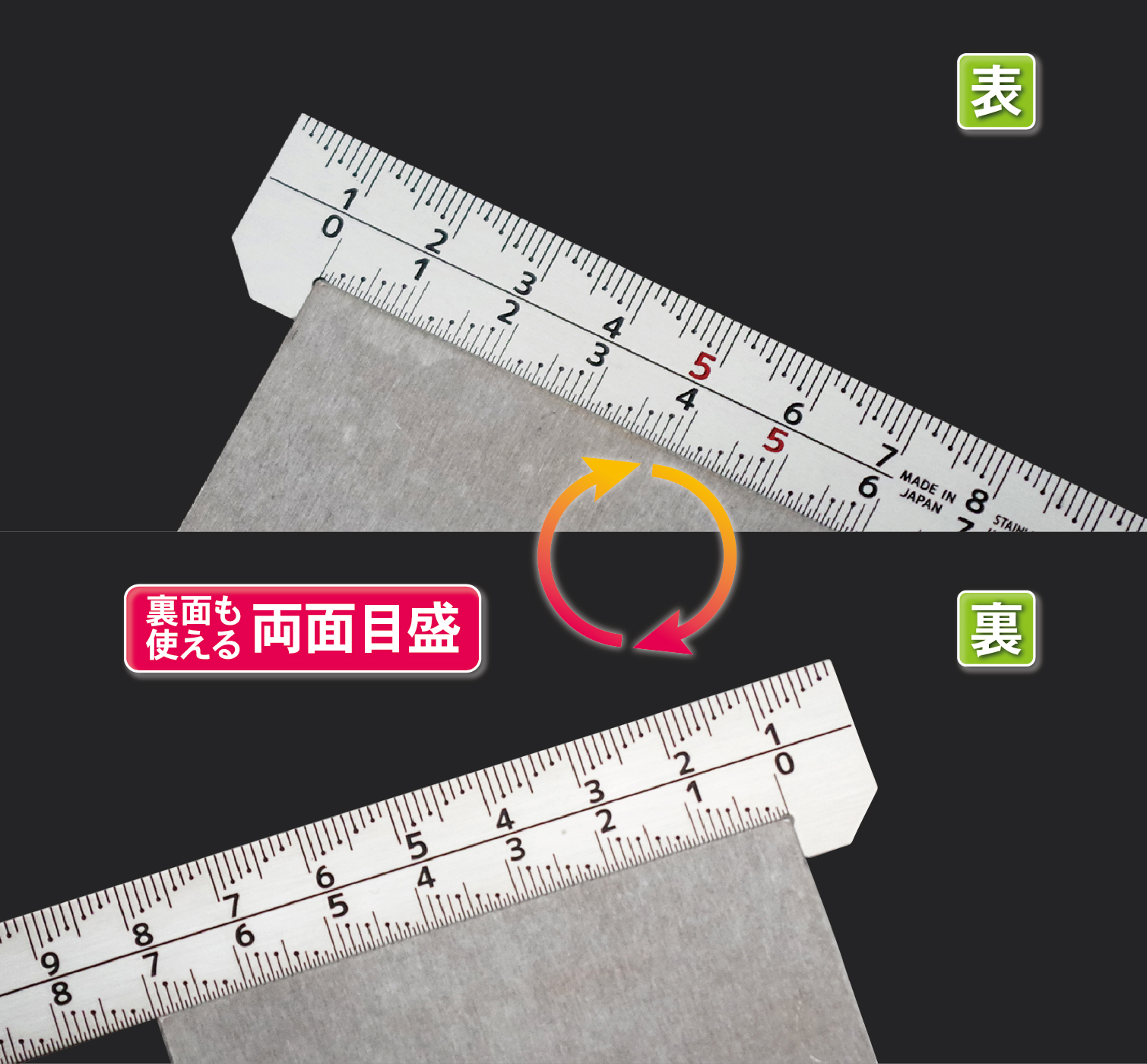 - ●スケール表面(おもてめん)は目盛が鮮明に見えるシルバー仕上げです。