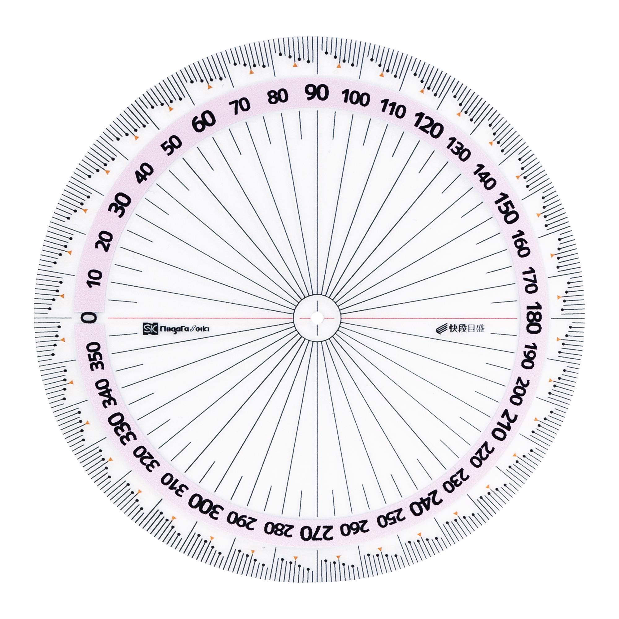 • ●中心に穴が開いているため、えんぴつの先端を挿して0°を合わせることができます。