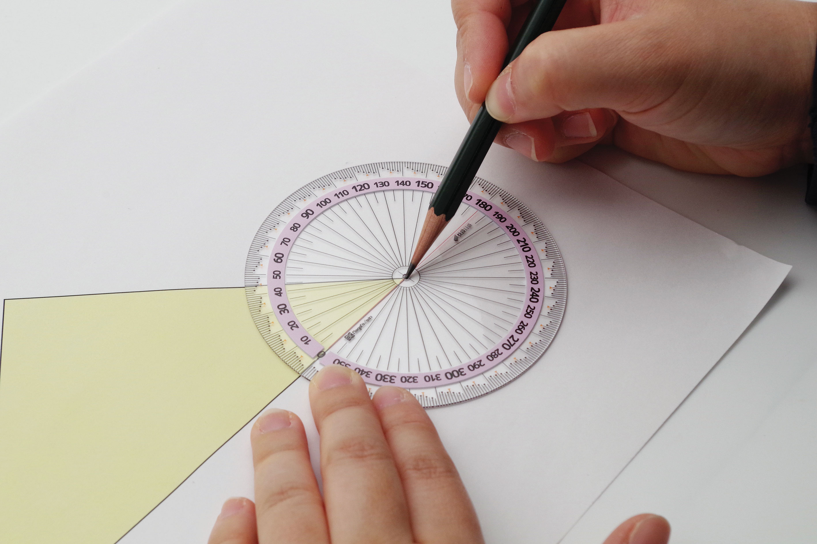 • ●現場の声から生まれた、もう迷わない分度器です。