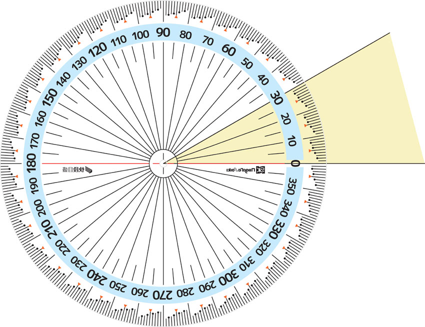 • ●1°単位の目盛が見やすく、2°毎に黒丸、5°毎に▲表示で数値を瞬時に把握できる階段状目盛です。