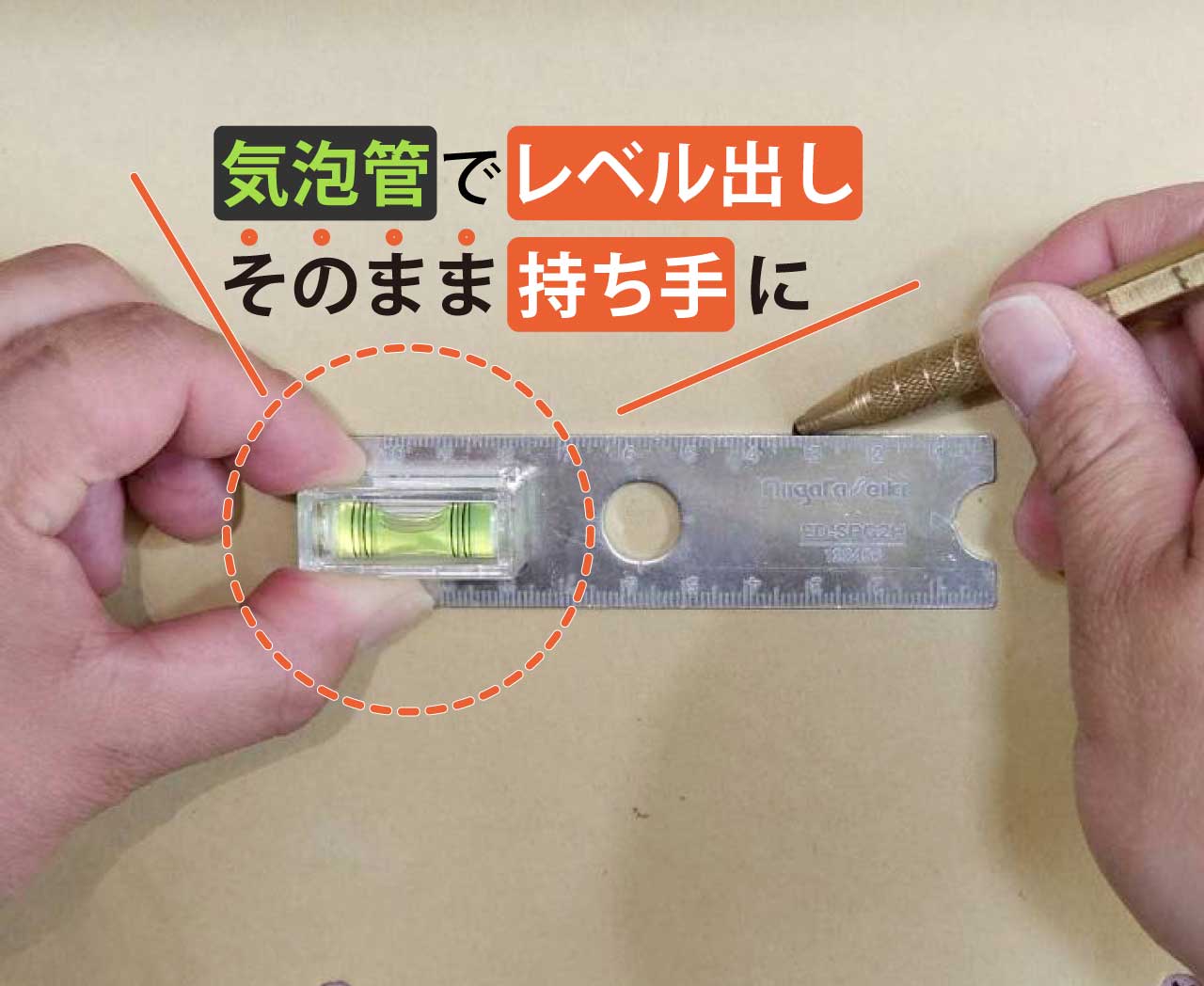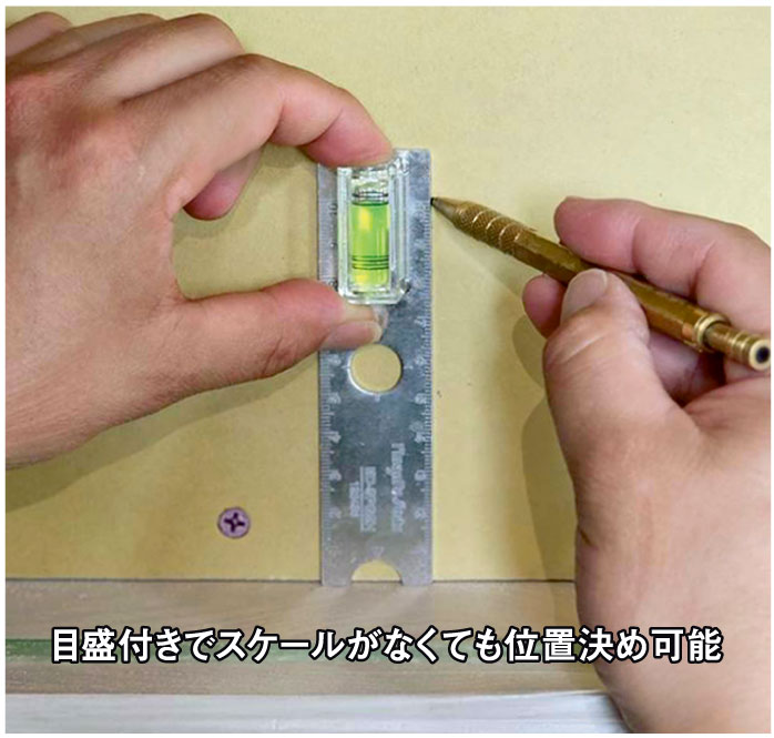 - ●Sプレートの取付時、窓あけ用のケガキ作業や水平測定に
