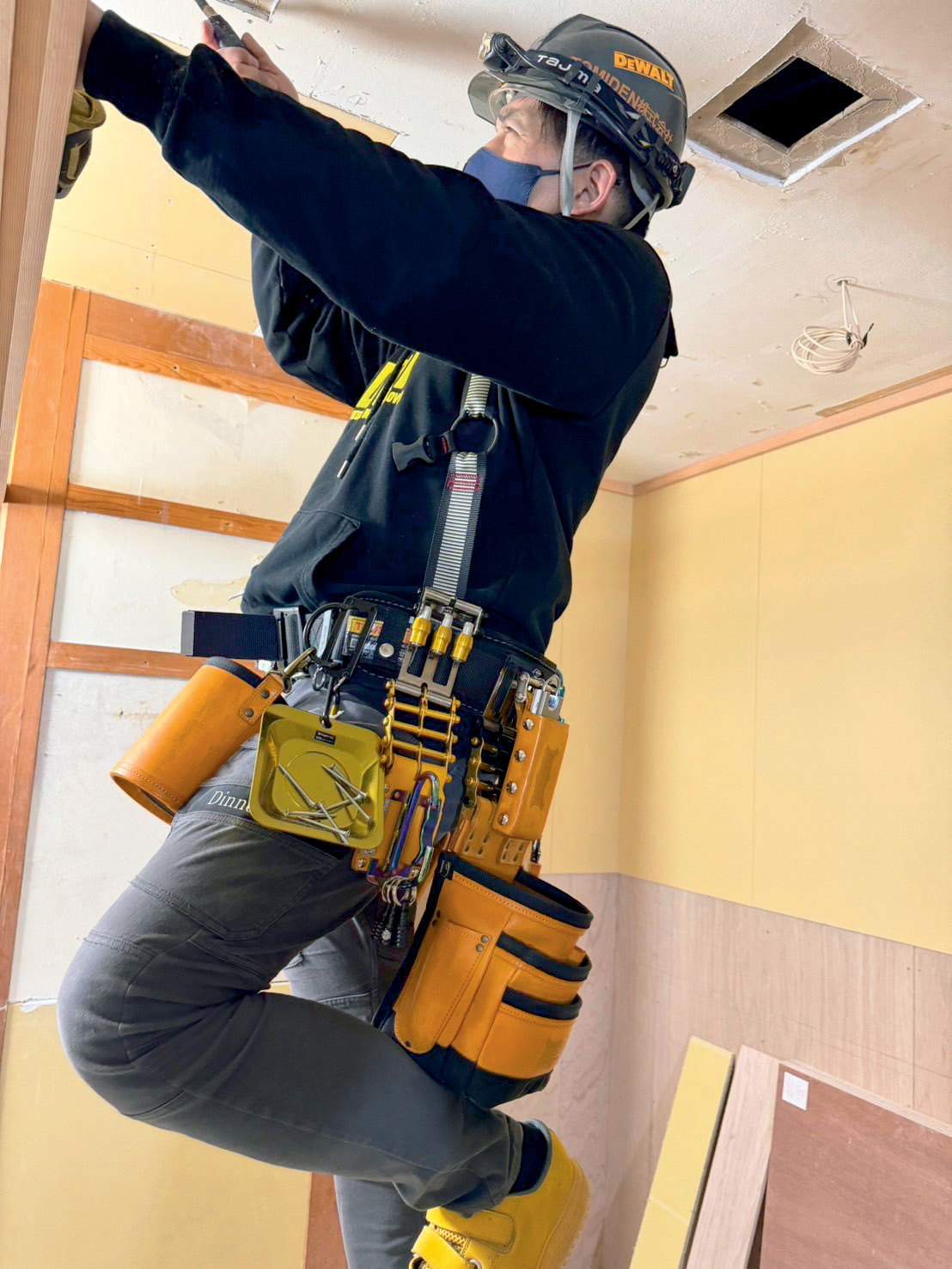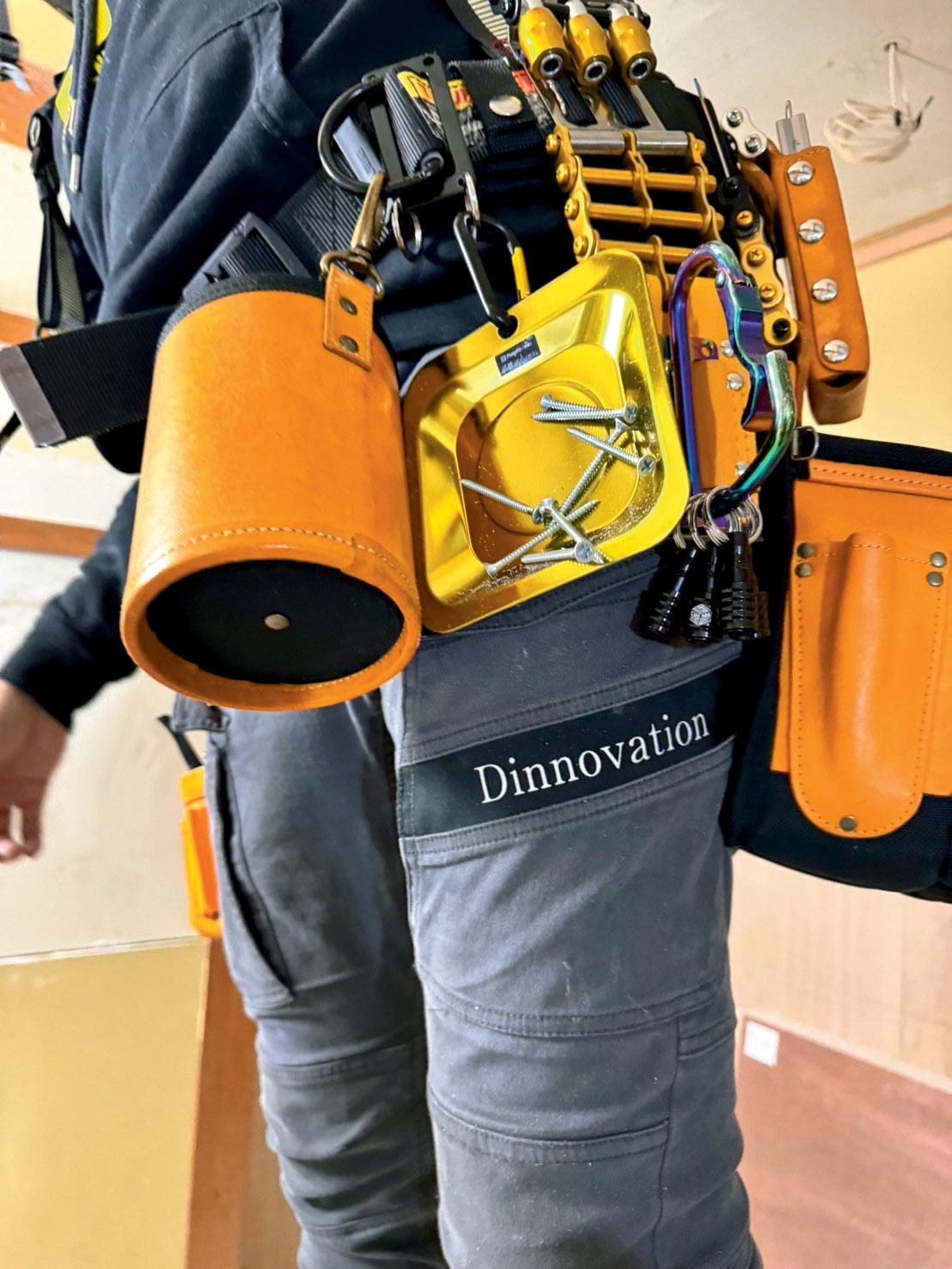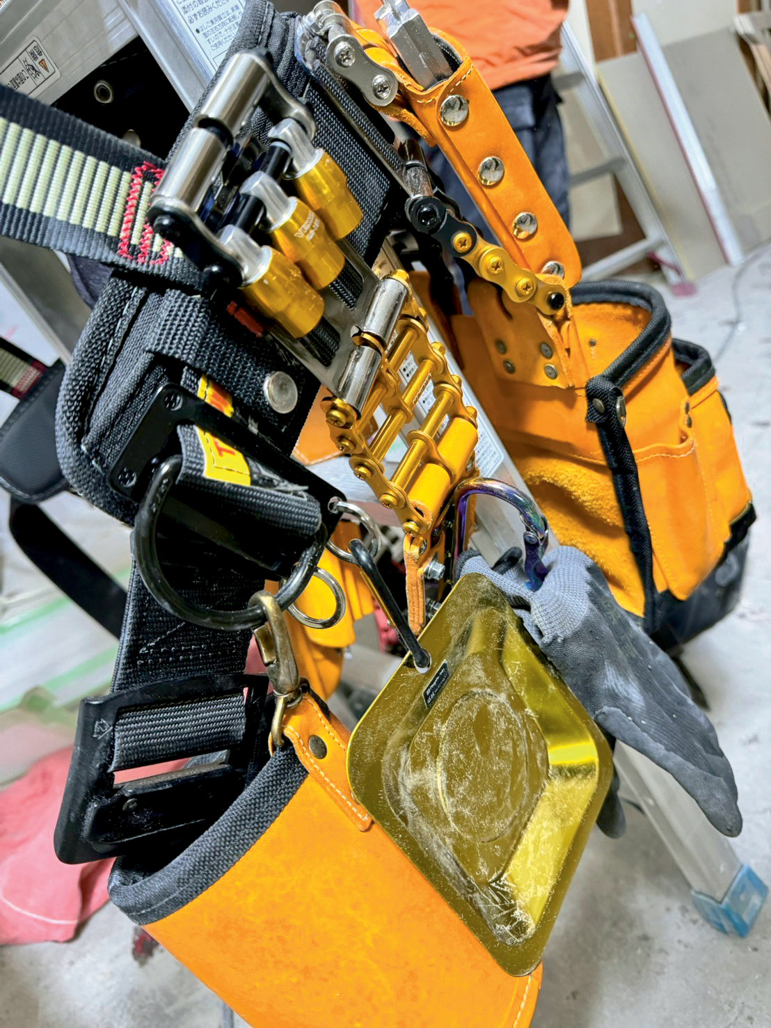 - ●トレー本体は傾斜があり、カラビナで取り付けた際は体への密着性を高め、不意な跳ね上がりを防止するとともに、ビスなどが取りやすい形状になっています。