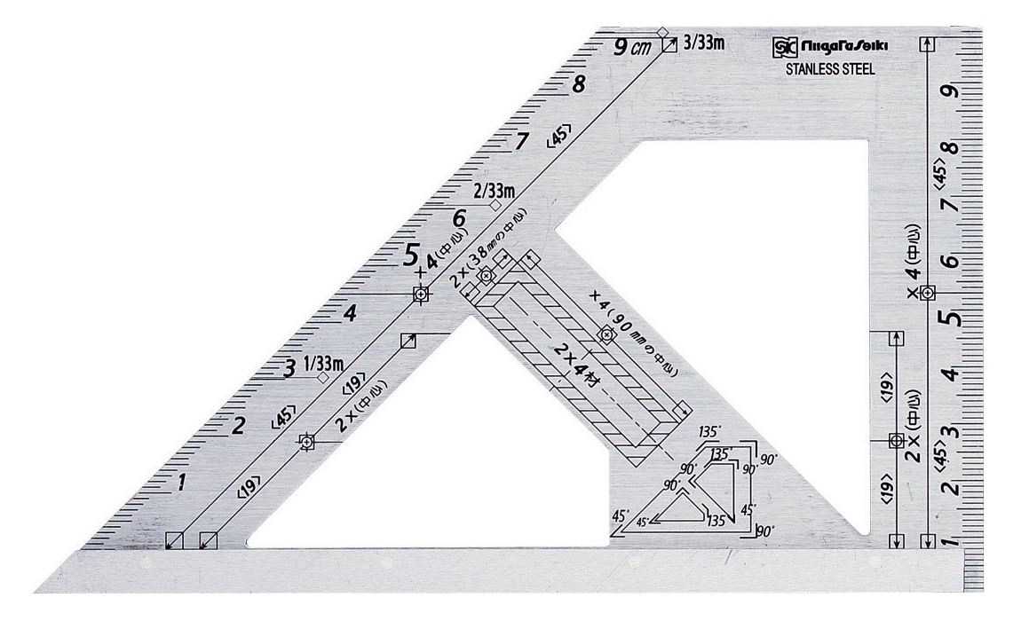 - ●45°、90°、135°が判り、ケガキ作業が簡単です。