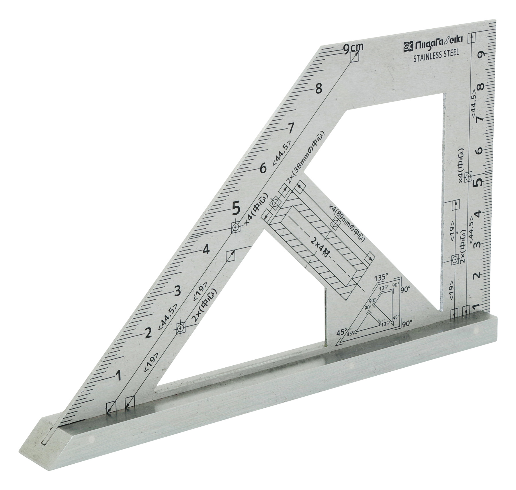 - ●45°、90°、135°の確認やケガキ作業、直角測定、2×4材の中心出しに