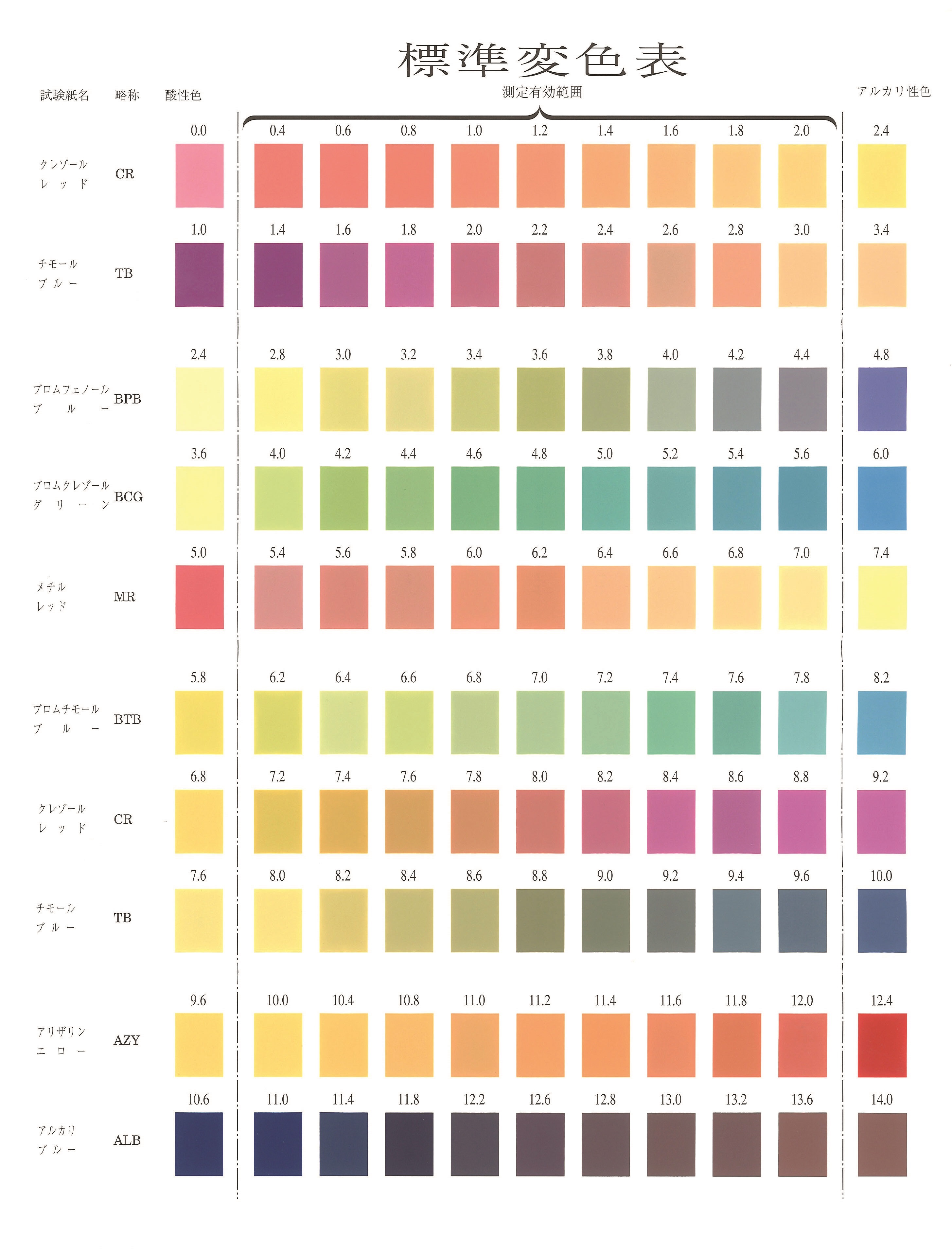 PRODUCTS理化学用品 HOME製品情報作業用品理化学用品PH試験紙 標準変色表 - PH試験紙 標準変色表 - 用途 ●PH試験紙の変色確認に 特徴 ●PH試験紙用の標準変色表です。 仕様 材質 ●本体:紙 ※この表は掴んで左右にスクロール可能です。 商品コード 品番 本体質量 本体幅 本体高さ 本体奥行 標準小売価格 JANコード 00950020 - 15g 57mm 77mm 14mm - 4975846885271 ※この表は掴んで左右にスクロール可能です。 一覧に戻る