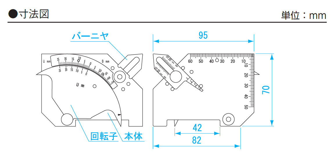 - ●本体直尺目盛(mm):50、60