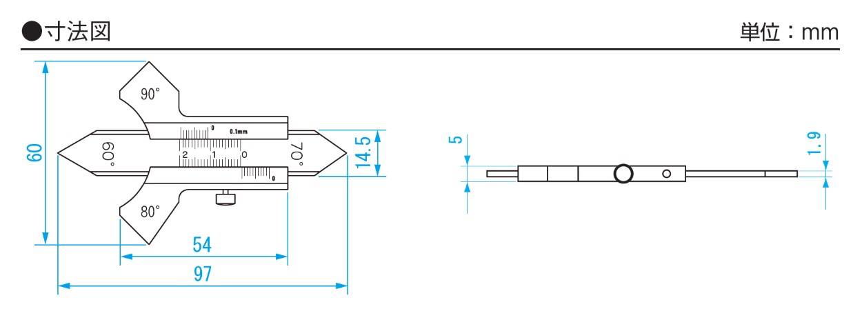 - ●各種角度が付いているので、角度ゲージとしても使用できます。
