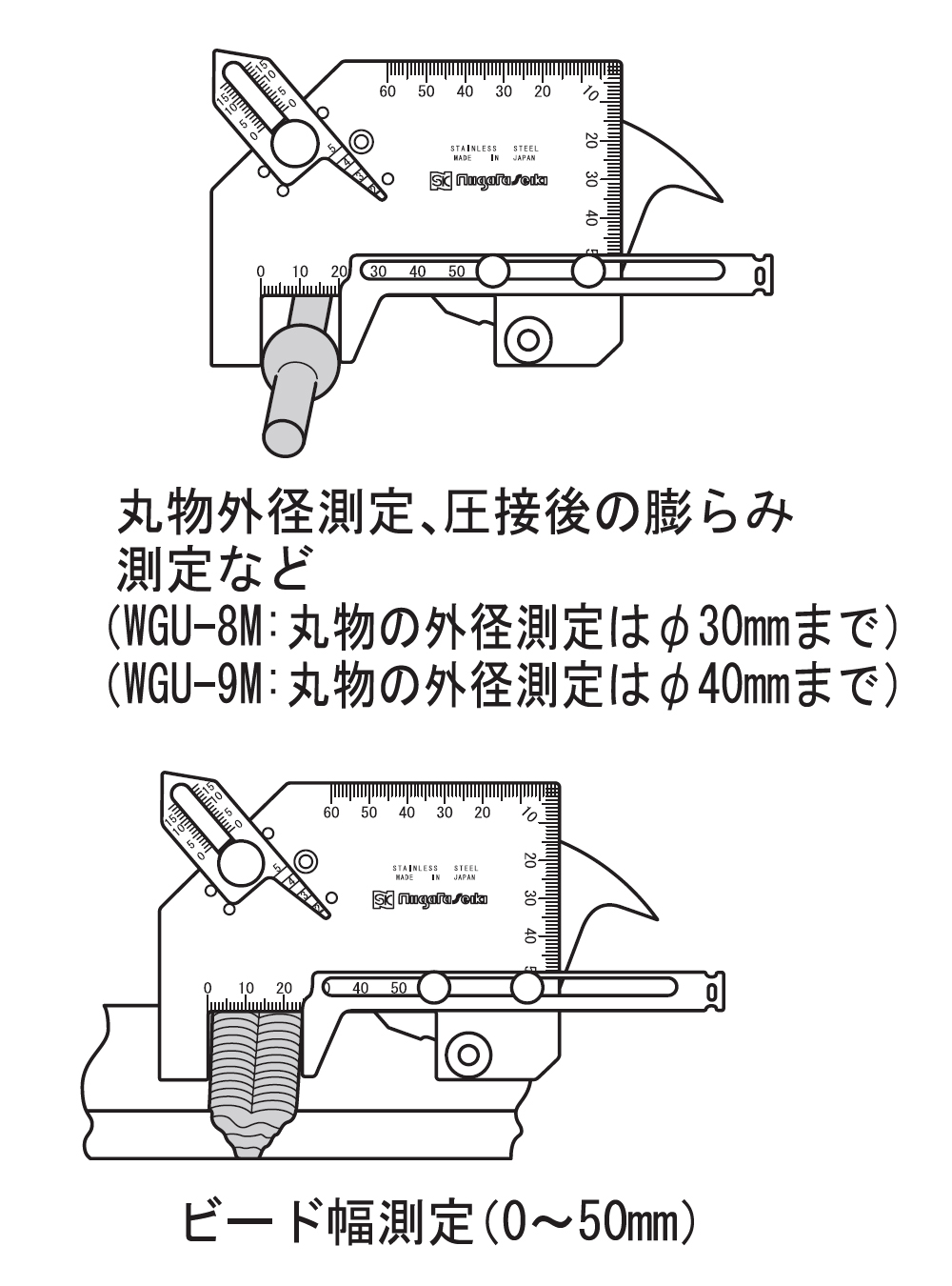 - ●溶接の余盛、すみ肉の大きさ及び角度等の測定、圧接溶接の膨らみ測定に