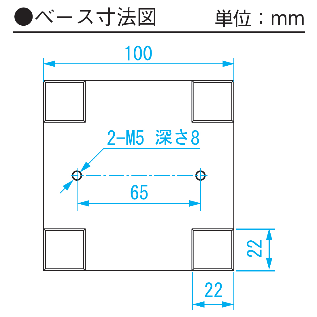 - ●本体ベース寸法(mm):L100xW100