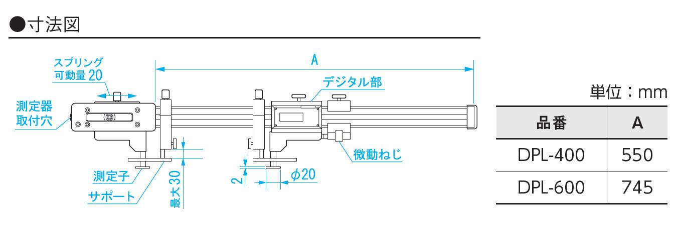 ●繰返精度は、本体のデジタル部を固定し、別売の電気マイクロメータやデジタルインジケータを取り付けて測定する場合です。