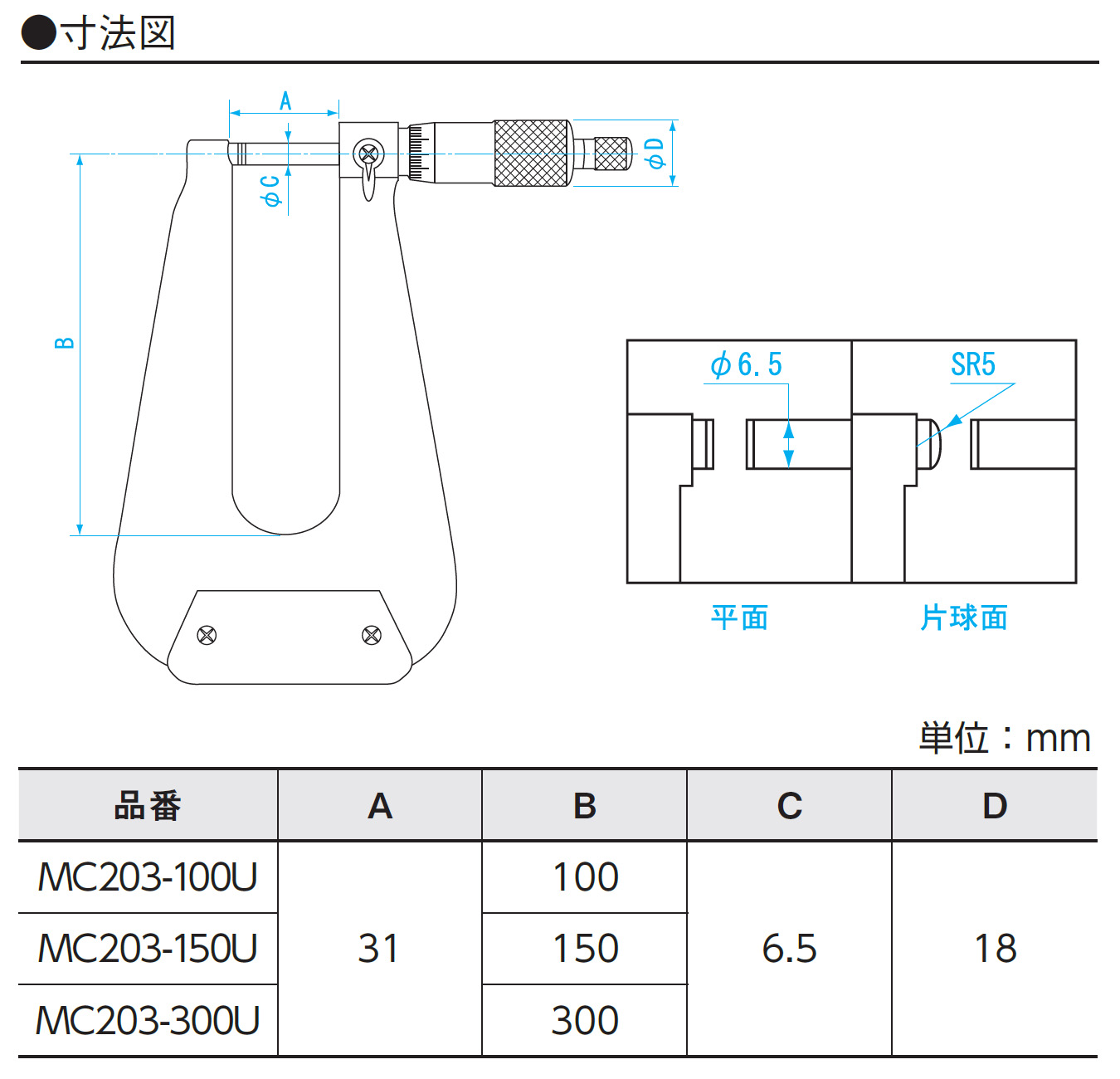 【廃番】U字形鋼板マイクロメータ MC203-100U
