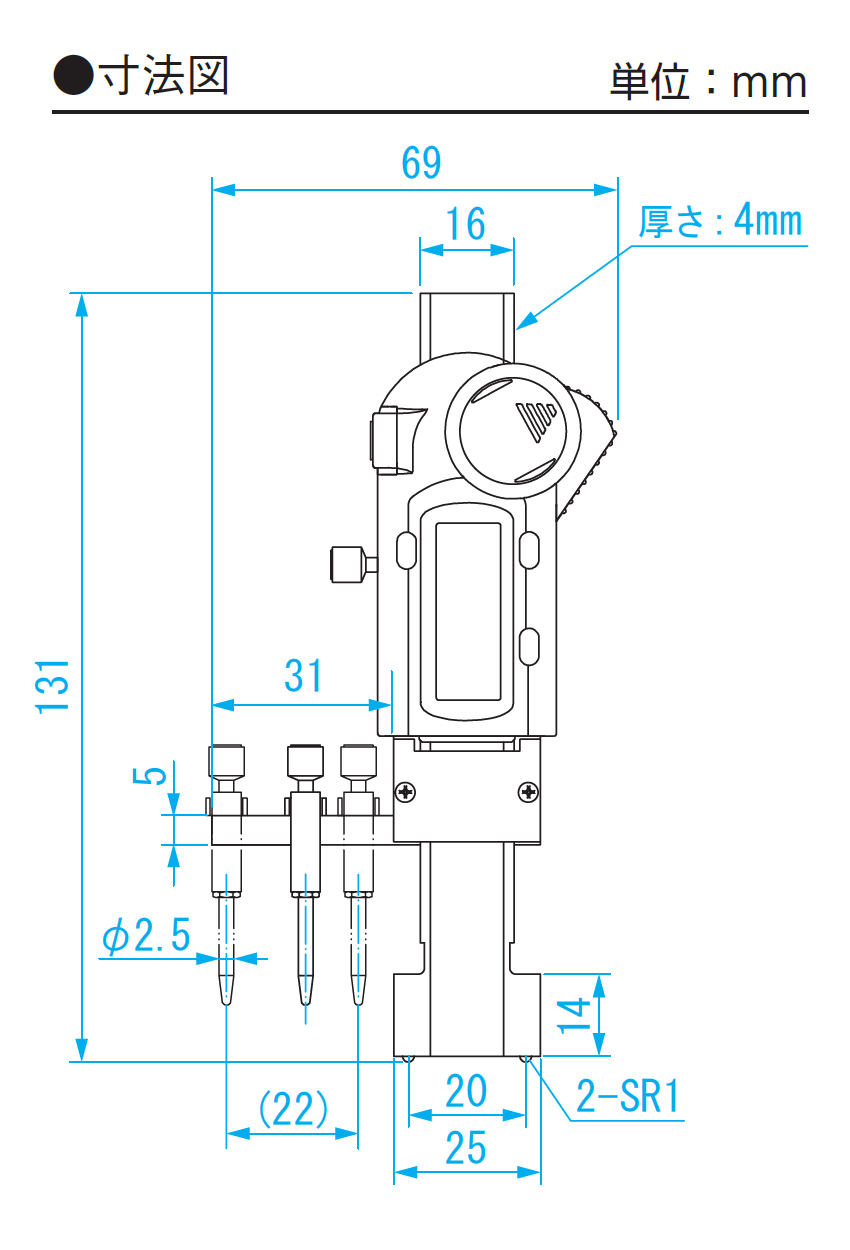 - ●測定子(mm):先端SR0.5