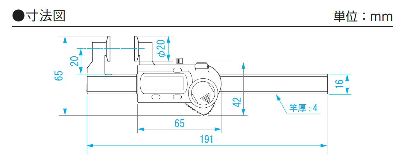 - ●φ20mmの円盤型測定子でワイヤーロープの直径測定が安定して行えます。