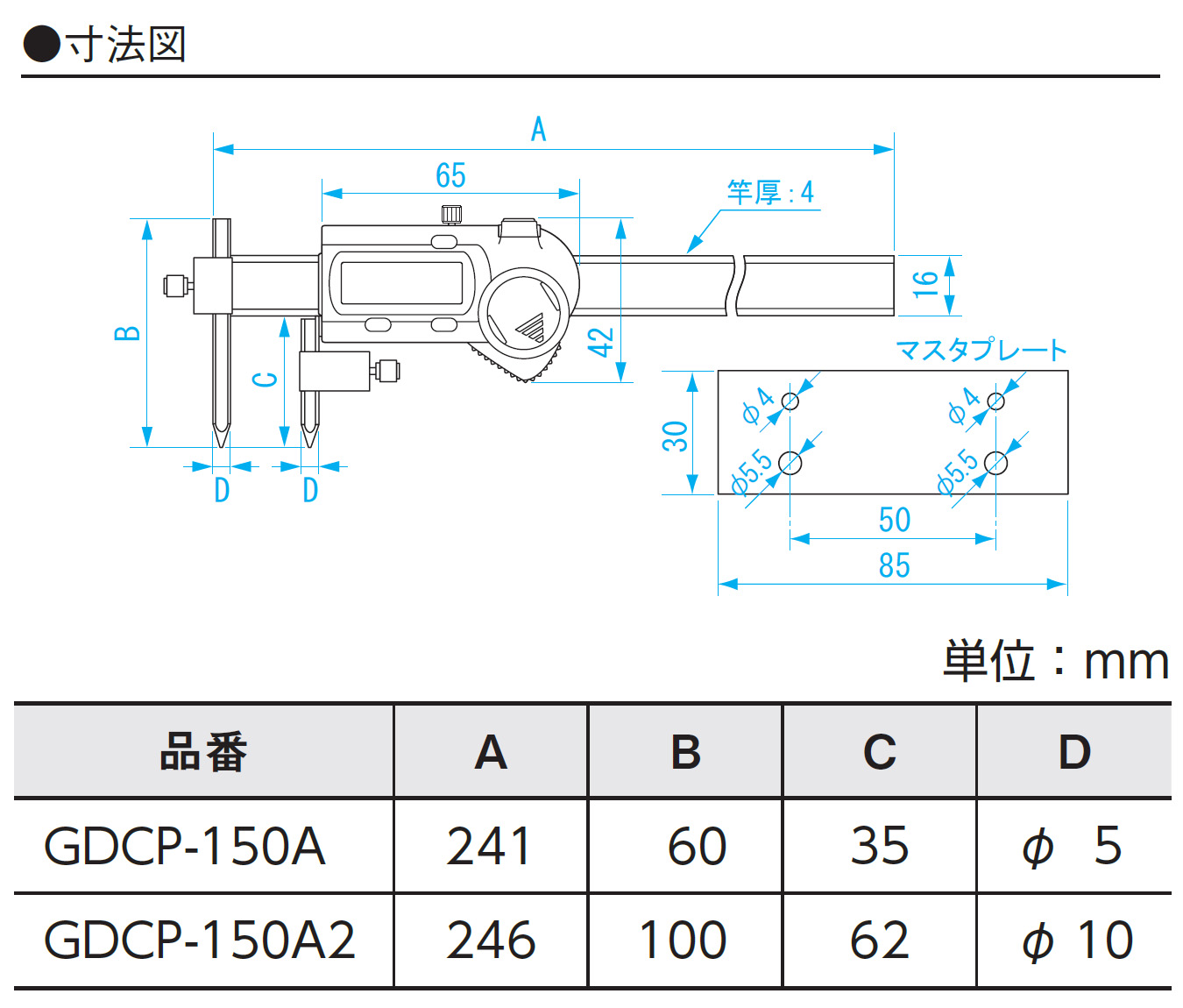 穴ピッチ用デジタルノギス 10-150mm GDCP-150A2
