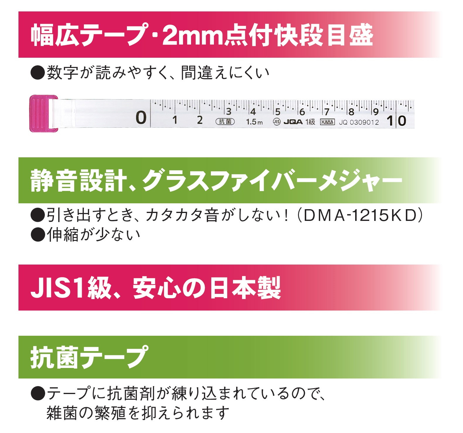 洋裁メジャーバラ 快段目盛 12×1.5m DMB-1215KD