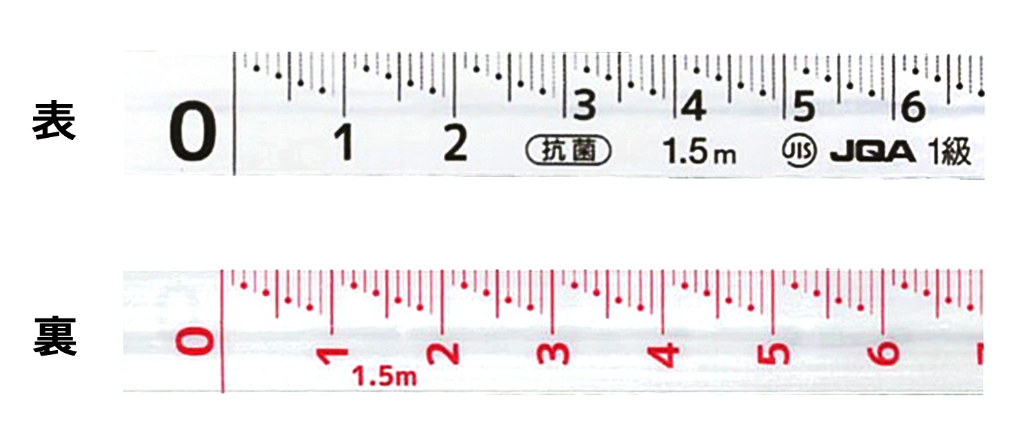 - ●1mm単位の目盛が見やすい階段状目盛です。