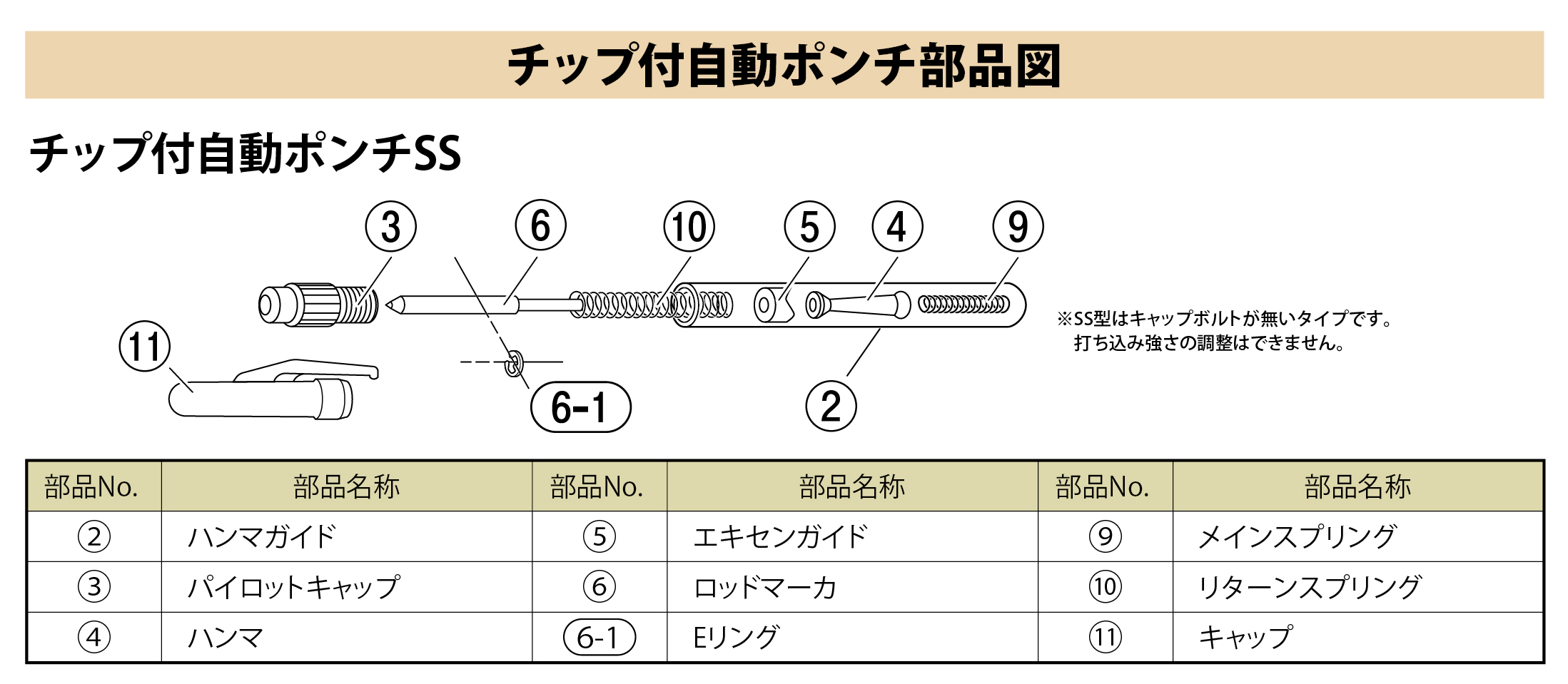 - ●ハンマー不要でポンチ作業ができます(オートリターンタイプ)。