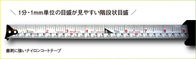 ・1mm単位の目盛が見やすい階段状目盛です。