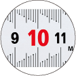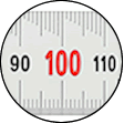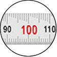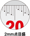 ・1mm単位の目盛が見やすく、数値を瞬時に把握できる連続追数字表示+2mm点付の階段状目盛です。